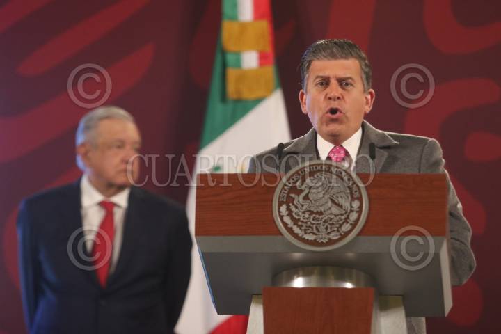 CIUDAD DE MÉXICO, 03ENERO2022.- Andrés Manuel López Obrador, Presidente de México, durante la primera mañanera del año en Palacio Nacional. Lo acompañaron Ricardo Sheffield Padilla, titular de Profeco; Rosa Icela Rodríguez, secretaria de Seguridad y Protección Ciudadana; Jeremy Corbyn, miembro del parlamento Británico y ex líder del Partido Laborista, y su esposa Laura Álvarez, acompañante (esposa). FOTO: MOISÉS PABLO/CUARTOSCURO.COM
