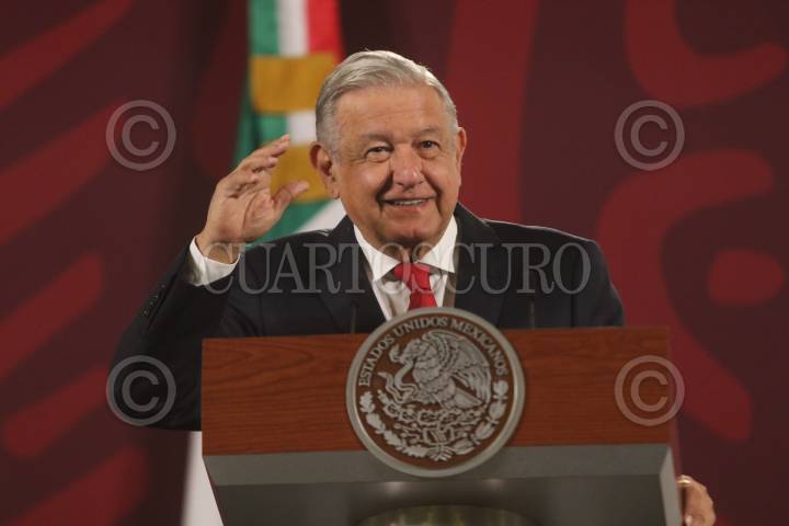 CIUDAD DE MÉXICO, 03ENERO2022.- Andrés Manuel López Obrador, Presidente de México, durante la primera mañanera del año en Palacio Nacional. Lo acompañaron Ricardo Sheffield Padilla, titular de Profeco; Rosa Icela Rodríguez, secretaria de Seguridad y Protección Ciudadana; Jeremy Corbyn, miembro del parlamento Británico y ex líder del Partido Laborista, y su esposa Laura Álvarez, acompañante (esposa). FOTO: MOISÉS PABLO/CUARTOSCURO.COM