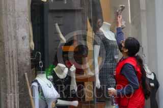 CIUDAD DE MÉXICO, 03ENERO2022.- Una empleada limpia el aparador de una tienda de ropa en la calle de Madero. FOTO: MOISÉS PABLO/CUARTOSCURO.COM