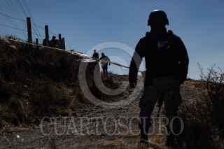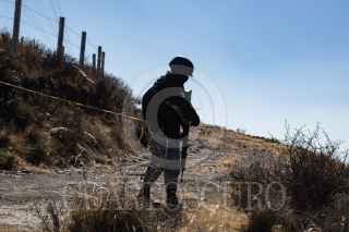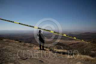 VETAGRANDE, ZACATECAS, 03ENERO2022.- Un hombre fue encontrado sin vida en la cima del cerro de las antenas del municipio vecino de la capital. El hallazgo del cuerpo degollado y con impactos de bala, fue realizado al rededor de la 13 horas, por lo que policías de investigación estatales y elementos de la Fiscalía se trasladaron al lugar para realizar las primeras diligencias. Elementos de Policía Estatal y de Guardia Nacional resguardaron la zona del homicidio. FOTO: GENARO NATERA /CUARTOSCURO.COM