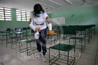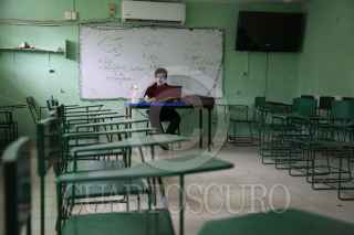 MÉRIDA, YUCATÁN, 03ENERO2022.- La Secretaría de Educación del Gobierno del Estado de Yucatán en coordinación con la Secretaría de Salud de Yucatán decidieron suspender las clases presenciales para retomarlas en línea, esto a causa del incremento de contagios de Covid 19 en el estado en los primeros días del año. "Al menos durante dos semanas se mantendrán las clases en línea para evitar más contagios, los docentes van acudir a su centro de trabajo para realizar sus clases por internet" comentó, Diego Vargas Tamayo, director de la Escuela Federal No. 1, “Agustín Vadillo Cicero” de la entidad. FOTO: MARTÍN ZETINA/CUARTOSCURO.COM