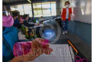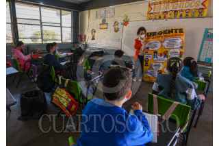 TOLUCA, ESTADO DE MÉXICO, 04ENERO2022.- Las escuelas del Estado de México regresaron a clases de manera escalonada, como se veía manejando, y las medidas que se tienen al interior y exterior de las aulas continúan reforzándose para evitar que los estudiantes que acuden se contagien de COVID-19, de acuerdo al Gobernador Alfredo de Mazo, el regreso presencial en su totalidad sería hasta el mes de febrero si las condiciones del semáforo epidemiólogo continúa como hasta ahora. FOTO: CRISANTA ESPINOSA AGUILAR /CUARTOSCURO.COM
