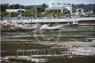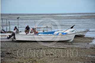 CAMPECHE, CAMPECHE, 04ENERO2022.- Varias embarcaciones ribereñas no han podido salir desde ayer debido al fenómeno natural de Bajamar o Marea Baja la cual se deriva cuando la marea va disminuyendo hasta llegar a su punto más bajo y es ocasionado cuando la luna se encuentra más cerca de la tierra. FOTO: MICHALE BALAM/CUARTOSCURO.COM