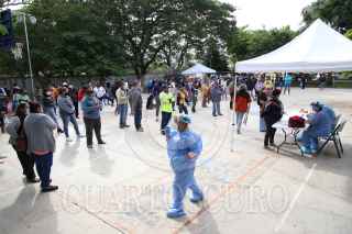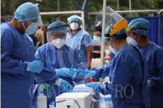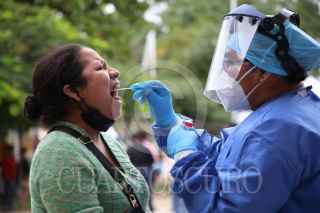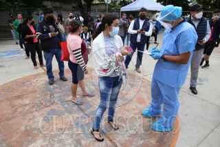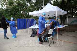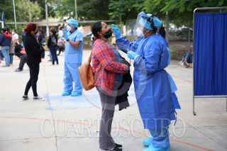 MÉRIDA, YUCATÁN, 04ENERO2022.- Hoy por la mañana, y hasta el viernes próximo, personal de la Secretaria de Salud de Yucatán (SSY) realizo 100 pruebas gratuitas de antígenos para detectar Covid-19. Desde muy temprana hora las personas acudieron a formarse en el parque de La Cuarta, ubicado en el Fovisste Residencial Pensiones, ante el temor de contagios de la nueva variante Ómicron. De acuerdo a información oficial en el estado, se han detectado 78,494 casos de contagios registrados. 71,129 pacientes ya se recuperaron: no presentan síntomas ni pueden contagiar. En total, son 6,490 las personas fallecidas a causa del Coronavirus. FOTO: MARTÍN ZETINA/CUARTOSCURO.COM