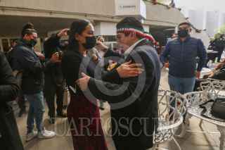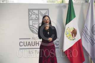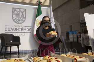 CIUDAD DE MÉXICO, 04ENERO2021.- Sandra Cuevas, alcaldesa de Cuauhtémoc, ofreció conferencia de prensa en donde descartó el corredor tecnológico que propuso para la Zona Rosa, esto tras recibir varias criticas, en su lugar impulsará un corredor verde. Al finalizar el encuentro partió una rosca con miembros de su equipo. FOTO: MOISÉS PABLO/CUARTOSCURO.COM