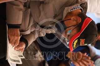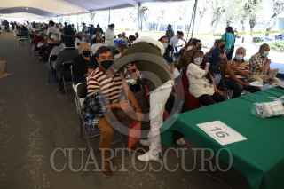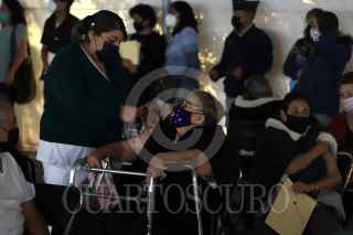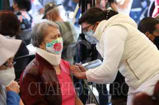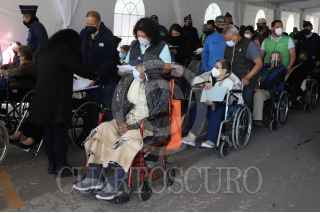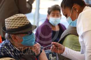 CIUDAD DE MÉXICO, 05ENERO2022.- Aplicación de la tercera dosis de refuerzo contra COVID 19 a adultos mayores de 60 años, con el biológico AstraZeneca en la explanada del Centro Cultural Torres Bodet del IPN. FOTO: EDGAR NEGRETE/CUARTOSCURO.COM