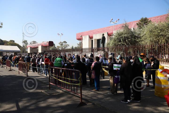 CIUDAD DE MÉXICO, 05ENERO2022.- Aplicación de la tercera dosis de refuerzo contra COVID 19 a adultos mayores de 60 años, con el biológico AstraZeneca en la explanada del Centro Cultural Torres Bodet del IPN. FOTO: EDGAR NEGRETE/CUARTOSCURO.COM