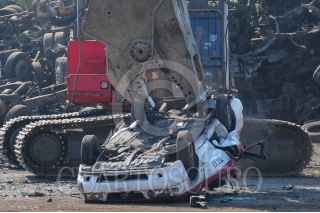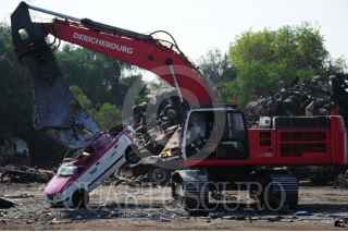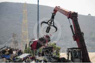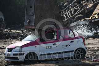ECATEPEC, EDOMEX, 05ENERO2022. - Decenas de taxistas capitalinos acudieron a las instalaciones de una planta recicladora en el Estado de México para realizar el proceso de chatarrización a sus vehículos, la Secretaría de Movilidad entregará créditos de 75 mil pesos a los chóferes por realizar este proceso y preferente puedan utilizar un vehículo híbrido para llevar a cabo su trabajo. FOTO: DANIEL AUGUSTO /CUARTOSCURO.COM