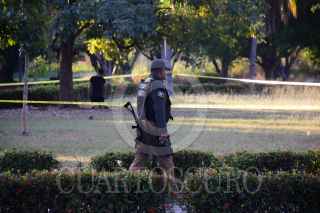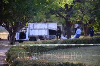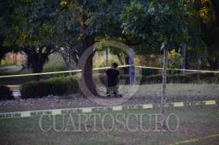 TAPACHULA, CHIAPAS, 05ENERO2022.- Un llamado al 911 alertó a las autoridades policíaca del cuerpo de un hombre colgado en el Parque del Teatro de la Ciudad. En el lugar las autoridades acordonaron el área e informaron que se trataba de una persona del sexo masculino con camiseta negra, pantalón de mezclilla y tenis, presumen que sea un migrante. El personal de servicios periciales comenzó con el levantamiento del cuerpo para trasladarlo a la SEMEFO. FOTO: DAMIÁN SÁNCHEZ/CUARTOSCURO.COM