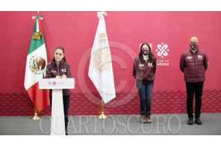 CIUDAD DE MÉXICO, 05DICIEMBRE2021.- Claudia Sheinbaum Pardo, jefa de gobierno de la Ciudad de México, encabezó la conferencia de prensa en donde anunció la incorporación de Carlos Augusto Morales, antes secretario particular de la jefa de gobierno, a la Secretaría de Seguridad Pública y Protección Ciudadana, así como el Programa de Repavimentación para el presente año. Por su parte, Jesús Antonio Esteva, secretario de Obras y Servicios capitalino, en compañía de la directora general de Infraestructura Vial Ericka Santillán informaron sobre el mantenimiento que se realiza a la Red Vial Primaria. FOTO: GOBIERNO CIUDAD DE MÉXICO/CUARTOSCURO.COM