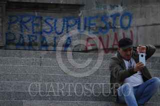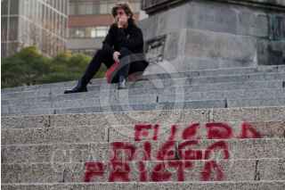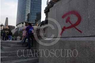 CIUDAD DE MÉXICO, 05ENERO2021.- Estudiantes de la Escuela Nacional de Antropología e Historia (ENAH), que el día de ayer anunció un recorte de personal y con ello una ola de protestas y manifestaciones en redes y el día de hoy presencial, realizaron pintas en el Ángel de la Independencia con la leyenda “Fuera Diego Prieto” y “Presupuesto para la ENAH”. FOTO: GALO CAÑAS/CUARTOSCURO.COM
