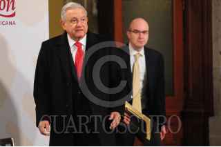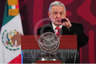 CIUDAD DE MÉXICO, 06ENERO2021.- Andrés Manuel López Obrador, presidente de México, encabezó la conferencia mañanera de este jueves donde trató los temas de economía por los que atraviesa el país, tal como la inflación, el peso y salario mínimo. El mandatario mexicano estuvo acompañado por Carlos Torres, coordinador general de Programas Integrales para el Desarrollo. FOTO: DANIEL AUGUSTO /CUARTOSCURO.COM