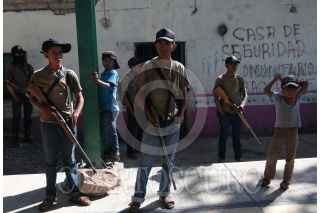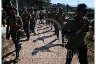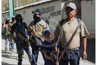 JOSÉ JOAQUÍN HERRERA, GUERRERO, 06ENERO2022.- Policía comunitaria de la Casa de justicia pueblos fundadores CRAC, niñas, niños y habitantes de Ayehualtempa protestaron en las calles de la comunidad para exigir un módulo de Campamento militar, la aparición con vida de José Juan de 24 años desaparecido el 11 de diciembre del año pasado y maestros para las escuelas. Agregaron que de no ser atendidas sus demandas o abrir una mesa de diálogo presentarían a 60 niños armados nuevos en la guardia comunitaria. Al momento hay al menos 25 jóvenes y niños que pertenecen a la guardia comunitaria. FOTO: ANDREA MURCIA /CUARTOSCURO.COM