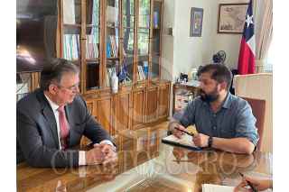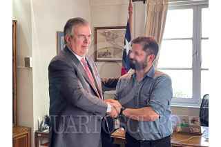 SANTIAGO, CHILE, 06ENERO2022.- El canciller Marcelo Ebrard Casaubon, en nombre del presidente Andrés Manuel López Obrador, se reunió en Santiago, Chile, con el presidente electo de Chile, Gabriel Boric Font, con quien acordó establecer una alianza estratégica entre ambos países cuando tome protesta el próximo 11 de marzo. Durante el encuentro, las partes resaltaron la visión progresista compartida por el Gobierno de México y el próximo Gobierno de Chile, y el compromiso con la promoción del bienestar nuestros pueblos. El canciller Ebrard y el presidente electo Boric acordaron una alianza para impulsar junto con otros gobiernos progresistas de América Latina y el Caribe, una voz común en la arena internacional para hacer frente a los desafíos. FOTO: SRE/CUARTOSCURO.COM