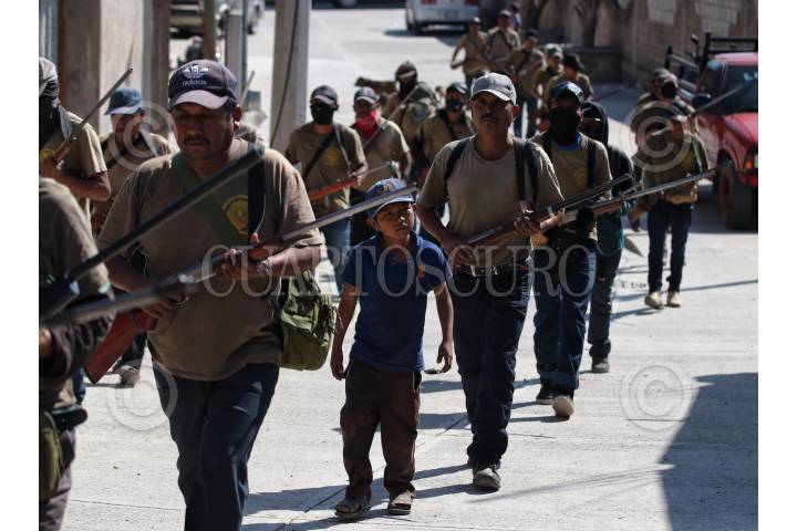 JOSÉ JOAQUÍN HERRERA, GUERRERO, 06ENERO2022.- Policía comunitaria de la Casa de justicia pueblos fundadores CRAC, niñas, niños y habitantes de Ayehualtempa protestaron en las calles de la comunidad para exigir un módulo de Campamento militar, la aparición con vida de José Juan de 24 años desaparecido el 11 de diciembre del año pasado y maestros para las escuelas. Agregaron que de no ser atendidas sus demandas o abrir una mesa de diálogo presentarían a 60 niños armados nuevos en la guardia comunitaria. Al momento hay al menos 25 jóvenes y niños que pertenecen a la guardia comunitaria. FOTO: ANDREA MURCIA /CUARTOSCURO.COM