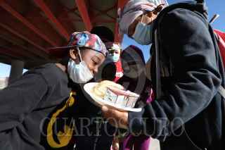 SALTILLO, COAHUILA, 06ENERO2022.- Cinco niños migrantes Hondureños en compañía de su tía y mamá recorren varios bulevares principales de la ciudad pidiendo una moneda, con la finalidad de obtener su primera rosca de reyes. FOTO: ALEJANDRO RODRÍGUEZ/CUARTOSCURO.COM