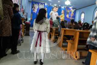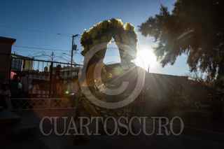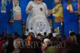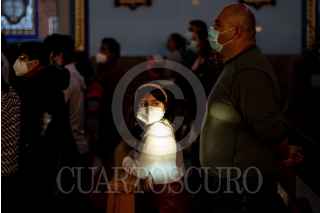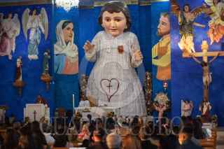 GUADALUPE, ZACATECAS, 06ENERO2021.- Luego de dos años de pausa a consecuencia de la pandemia por la Covid-19, este año, la comunidad de Zóquite, con una población de 6 mil habitantes, recibió a cientos de fieles del Gran Niño Dios. La figura considerada la más grande del mundo con 6.58 metros de altura, 3.60 metros de ancho y 750 kilos de peso, se encuentra en la Parroquia "La Epifania del Señor" de esta comunidad. También llamado, El niño Dios del amor, la figura fue fabricada por escultores de Ciudad Nezahualcóyotl, Estado de México y llego al templo el 13 de noviembre de 2019. La celebración cada 6 de enero celebra a la Sagrada Familia con una Feria Patronal, se realizan danzas, venta de alimentos y artículos religiosos, pirotecnia y un tradicional baile. La expectación por la figura gigante ha llevado a que visitantes de otros municipios y estados del país, realicen turismo religioso. FOTO: ADOLFO VLADIMIR /CUARTOSCURO.COM