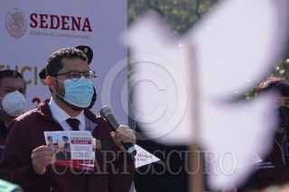 CIUDAD DE MÉXICO, 07ENERO2021.- Martí Batres Guadarrama, secretario de Gobierno de la Ciudad de México, encabezó el banderazo de salida de la jornada Sí al Desarme Sí a la Paz en el Zócalo capitalino. El mandatario estableció que las armas no son elementos que protejan a la ciudadanía sino que crean más vulnerabilidad y peligro para las familias de ciudad. FOTO: GALO CAÑAS/CUARTOSCURO.COM