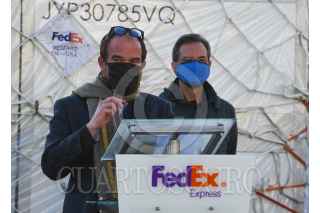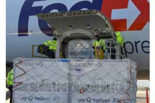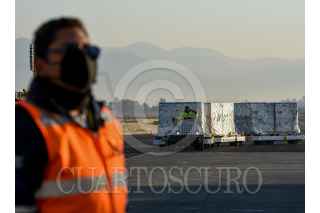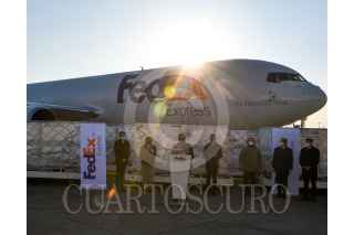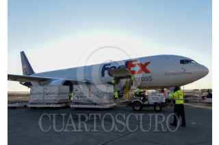 TOLUCA, ESTADO DE MÉXICO, 08ENERO2022.- Llegaron al Aeropuerto de Toluca 2.7 millones de vacunas de Moderna que fueron donadas por la farmacéutica y el gobierno de Estados Unidos, para ser aplicado su refuerzo contra COVID-19 a maestros y maestras, y trabajadores de educación, fueron recibidas por Ruy López Ridaura, director general del Centro Nacional de Programas Preventivos y Control de Enfermedades, Esteban Moctezuma Embajador de México en Estados Unidos, Delfina Gómez, Secretaría de Educación, informaron que las vacunas serán distribuidas de forma terrestre y aérea a los diversos estados de la República Mexicana. FOTO: CRISANTA ESPINOSA AGUILAR /CUARTOSCURO.COM