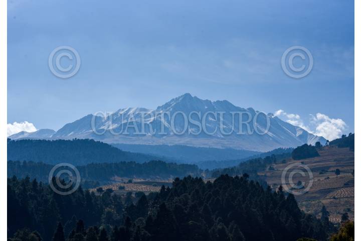 ZINACANTEPEC, ESTADO DE MÉXICO, 08ENERO2022.- Después de las bajas temperaturas que se han registrado en el Valle de Toluca el Volcán Xinantécatl se observa con capa blanca de nieve. FOTO: CRISANTA ESPINOSA AGUILAR /CUARTOSCURO.COM