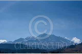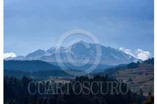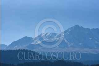 ZINACANTEPEC, ESTADO DE MÉXICO, 08ENERO2022.- Después de las bajas temperaturas que se han registrado en el Valle de Toluca el Volcán Xinantécatl se observa con capa blanca de nieve. FOTO: CRISANTA ESPINOSA AGUILAR /CUARTOSCURO.COM