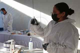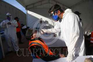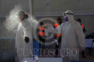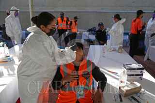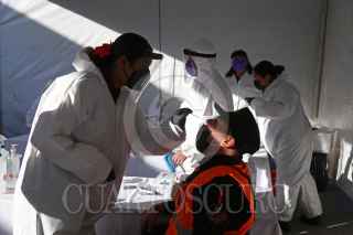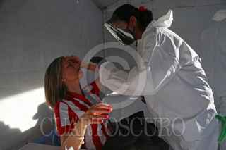 ZAPOPAN, JALISCO, 09ENERO2022.- Personal de la Secretaria de Salud del estado realiza pruebas Covid a personal asignado a cancha, esto previo al juego entre las Chivas de Guadalajara frente al conjunto de Mazatlán, en partido correspondiente a la Jornada 1 del Torneo Grita México Clausura 2022 de la Liga MX. FOTO: FERNANDO CARRANZA GARCIA / CUARTOSCURO.COM