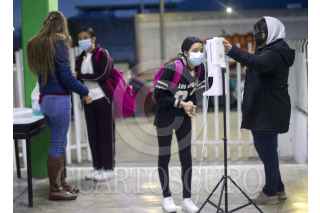 MONTERREY, NUEVO LEÓN, 10ENERO2021.- Se reiniciaron las clases presenciales en Nuevo León sin aforos establecidos y de manera voluntaria. Se registraron poca afluencia de alumnos en las escuelas de educación básica. El estado se mantiene en semáforo amarillo con más de 4mil contagios diarios de Covid-19. FOTO: GABRIELA PÉREZ MONTIEL / CUARTOSCURO.COM