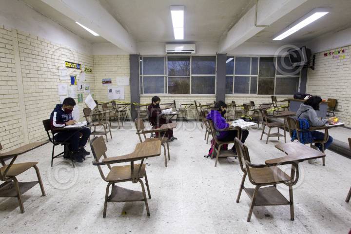 MONTERREY, NUEVO LEÓN, 10ENERO2021.- Se reiniciaron las clases presenciales en Nuevo León sin aforos establecidos y de manera voluntaria. Se registraron poca afluencia de alumnos en las escuelas de educación básica. El estado se mantiene en semáforo amarillo con más de 4mil contagios diarios de Covid-19. FOTO: GABRIELA PÉREZ MONTIEL / CUARTOSCURO.COM