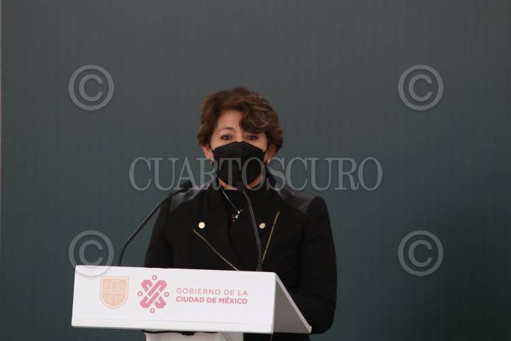 CIUDAD DE MÉXICO, 10ENERO2022. - Claudia Sheinbaum Pardo, jefa de Gobierno de la Ciudad acompañada de Delfina Gómez Álvarez, secretaria de la educación en la Ciudad; Luis humberto Fernández fuentes titular de la autoridad educativa en la Ciudad y Ariel Pacheca, representante de Microsoft durante la presentación de los Beneficios de las Herramientas Digitales Microsoft para la Comunidad Educativa de la Ciudad de México. El evento se llevó a cabo en la Escuela Secundaria Diurna 66 “Ida Appendini Dagasso. FOTO: ANDREA MURCIA /CUARTOSCURO.COM
