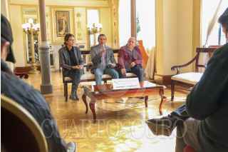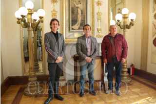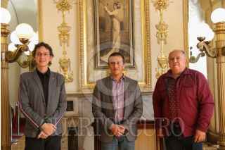 CIUDAD DE MÉXICO. 10ENERO2022.- Rodrigo González, Óscar Méndez y Miguel Ángel García; anunciaron la puesta en el escena en el teatro Esperanza Iris los próximos 18 y 19 de este mes, de la compañía de Danza Folklórica. FOTO: VICTORIA VALTIERRA/CUARTOSCURO.COM
