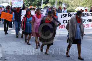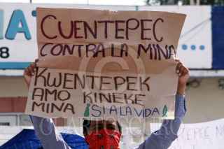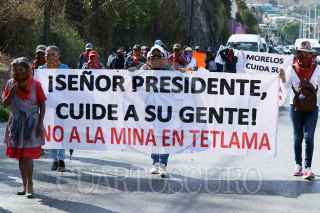 TEMIXCO, MORELOS, 10ENERO2022.- Indígenas de las comunidades de Cuentepec y Tetlama agrupados en la Unificación de Pueblos y Colonias contra la Minería en Morelos, junto con militantes del Congreso Nacional Indígena marcharon para exigir que el gobierno que encabeza Juana Ocampo Domínguez declare al municipio de Temixco, libre de concesiones mineras. La empresa minera canadiense Álamos Gold pretende operar en terrenos comunales una mina de oro y plata a tajo abierto. La minera ha proyectado explotar dos cerros, el Jumil y el Colotepec, los cuales están frente a la Zona Arqueológica de Xochicalco. Los opositores a las concesiones mineras en el estado advierten que de concretarse los planes de la Álamos Gold, mas de 200 mil personas serian afectadas directamente. FOTO: MARGARITO PÉREZ RETANA / CUARTOSCURO.COM