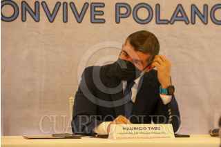 CIUDAD DE MÉXICO. 11ENERO2022.- El alcalde de Miguel Hidalgo, Mauricio Tabe, encabezo una reunión con restauranteros de la zona de Polanco firmó convenio para la reactivación de sus negocios y luego hablo con medios de comunicación. FOTO: VICTORIA VALTIERRA/CUARTOSCURO.COM