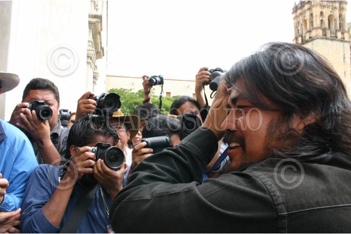 OAXACA, OAXACA 06NOVIEMBRE2006.- Flavio Sosa lider de la APPO durante la reunión con el exlder de la sección 22 Eragelio Mendoza. FOTO: MAX NUÑEZ/CUARTOSCURO.COM