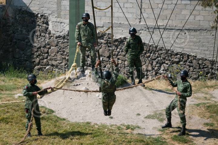 CIUDAD DE MÉXICO, 13ENERO2022.- La Brigada de Fusileros Paracaidistas (también conocida con las siglas (BFP), capacita a elementos del Ejército y Fuerza Aérea Mexicana a través de un curso combatiente de paracaidista en el Campo Militar 1. Con el lema "Del cielo a la misión", las unidades paracaidistas tienen la misión de transportar tropas o personal especializado a un lugar específico, así como el rescate, la protección y el traslado de personas, tanto militares como civiles que se encuentren en peligro en cualquier parte del país. Los requisitos para los postulantes son: tener condición física, medir más de 1.65 hombres y 1.60 mujeres, y aprobar los exámenes de admisión, físicos, mentales y emocionales. El curso combatiente de paracaidista dura 8 semanas, en las que las se dividen en 4 fases; de fuselaje, torre, arneses fijos y de caída fija, móvil y saltos de calificación en caídas de una altura de 1500 pies, en las Instalaciones del Centro Nacional de Adiestramiento en Chihuahua. Existen cinco tipos de paracaídas: de espalda, TNCR, de emergencia, tipo ola y next; tienen una vida de 15 años y responden a cualquier área en donde sean expuestos, son exportados de Alemania y Estados Unidos y cuando sufren algún daño o ruptura, se realiza una inspección y posteriormente se determina el descanso y su reparación. FOTO: GRACIELA LÓPEZ /CUARTOSCURO.COM