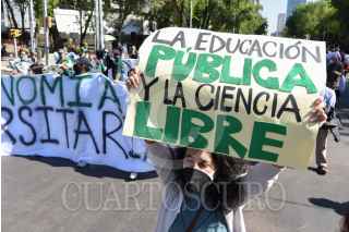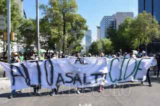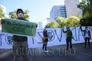 CIUDAD DE MÉXICO, 13ENERO2022.- Estudiantes, académicos e investigadores del Centro de Investigación y Docencia Económicas (CIDE) se manifestaron afuera de las instalaciones del Senado de la República y bloquearon por casi dos hrs. Paseo de la Reforma. La comunidad del CIDE protesta en contra del nombramiento de José Romero Tellaeche. FOTO: DANIEL AUGUSTO /CUARTOSCURO.COM