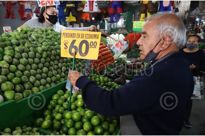 CIUDAD DE MÉXICO, 14ENERO2022.- En mercados de la ciudad el limón se mantiene en precios que oscilan los 45 a 60 pesos el kilogramo. Los aumentos a los precios de la canasta básica aunado a la baja producción de limón en estados como Michoacan han propiciado la subida que resienten los bolsillos de las familias. FOTO: EDGAR NEGRETE/CUARTOSCURO.COM