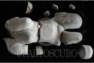 SAN LUIS POTOSÍ, TAMUÍN. 06NOVIEMBRE2006.- Escultura femenina encontrada en una ofrenda en la zona arqueológica de Tamtoc,presenta escarificaciones en los muslos, hombros y pecho. asociada a la fertilidad y la calendarización de las cosechas. FOTO: PAOLA HIDALGO/CUARTOSCURO.COM