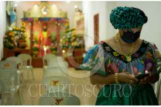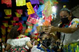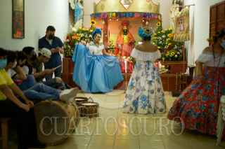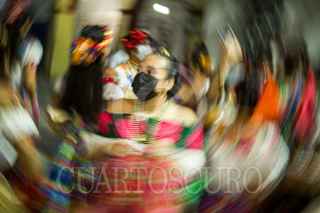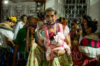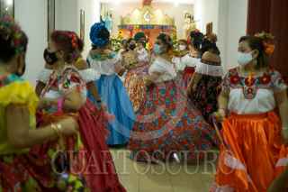 CHIAPA DE CORZO, CHIAPAS, 14ENERO2022.- La pandilla de la Tía They realiza en anuncio de la fiesta de San Antonio Abad unos de los Santos festejados y venerados durante las dos semana de la Fiesta Grande de Chiapa de Corzo. Las diferentes pandillas realizan el anuncio por las calles de la Ciudad, acompañadas de música tradicional y cuetes en su andar. FOTO: ISABEL MATEOS /CUARTOSCURO.COM