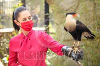 CIUDAD DE MÉXICO, 15ENERO2021.- Claudia Sheinbaum, jefa de gobierno de la Ciudad de México, sostiene un ejemplar de caracara durante el recorrido por las inmediaciones del zoológico de San Juan de Aragón en la que revisó los trabajos de mantenimiento y conservación de los animales. FOTO: GOBIERNO DE LA CIUDAD DE MÉXICO/CUARTOSCURO.COM