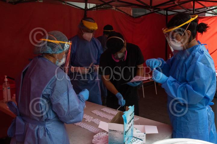 CIUDAD DE MÉXICO, 16ENERO2022.- Continúa la demanda para realizarse la prueba para detectar el Covid-19, ayer nuevamente se rompió el récord de contagios en un solo día, las personas que buscan este ansiado test se forman de 6 a 8 horas, como el módulo instalado en Forum Buenavista. FOTO: MOISÉS PABLO/CUARTOSCURO.COM