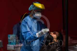 CIUDAD DE MÉXICO, 16ENERO2022.- Continúa la demanda para realizarse la prueba para detectar el Covid-19, ayer nuevamente se rompió el récord de contagios en un solo día, las personas que buscan este ansiado test se forman de 6 a 8 horas, como el módulo instalado en Forum Buenavista. FOTO: MOISÉS PABLO/CUARTOSCURO.COM