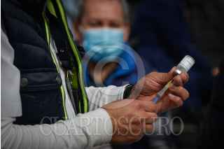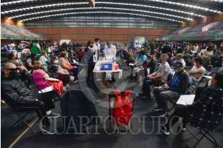 CIUDAD DE MÉXICO, 18ENEEO2022.- Adultos entre 50 y 60 años de edad asistieron a la Sala de Armas en Ciudad Deportiva y Palacio de los Deportes para recibir la vacuna de refuerzo contra covid-19. FOTO: MARIO JASSO/CUARTOSCURO.COM