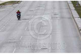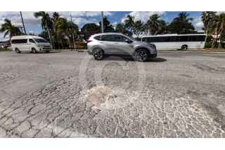 CANCÚN, QUINTANA ROO, 18ENERO2022.- Aspecto de la avenida Colosio que es la principal entrada a este destino turístico y que se encuentra destruida. Se anunció la rehabilitación de parte del gobierno federal. FOTO: ELIZABETH RUIZ /CUARTOSCURO.COM