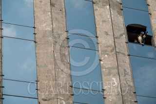 CIUDAD DE MÉXICO, 18ENERO2021.- Trabajadores de la construcción retiran por partes una ventana del edificio de la Comisión Federal para la Protección contra Riesgos Sanitarios, el cual se encuentra abandonado tras el sismo de 2017. FOTO: GALO CAÑAS/CUARTOSCURO.COM