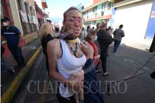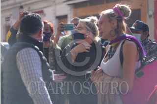 XALAPA, VERACRUZ, 19ENERO2022.- Integrantes de la comunidad LGBT+ en Xalapa se manifestaron en oficinas de la Fiscalía reclamando el cuerpo de la trabajadora sexual, Karina López, quien falleció el viernes pasado y al no contar con familiares continúa a disposición de las autoridades, por lo que podría remitirse a la fosa común. FOTO: YERANIA ROLÓN /CUARTOSCURO.COM