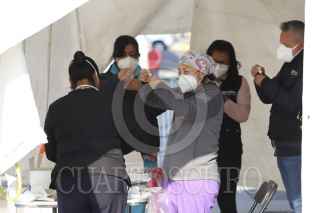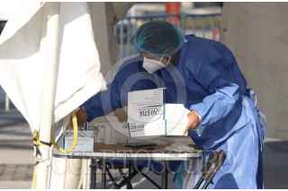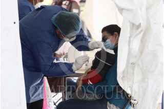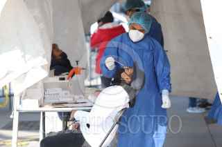 CIUDAD DE MÉXICO, 19ENERO2022.- En la explana de la Alcaldía Gustavo A. Madero se instaló un kiosco para realizar pruebas de detección de Covid-19, puesto que se contabilizan aumentos de casos de la variante ómicron en la población de la capital. FOTO: EDGAR NEGRETE/CUARTOSCURO.COM