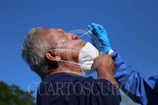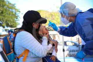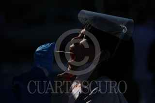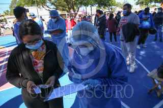 MÉRIDA, YUCATÁN, 19ENERO2022.- Ante el creciente número de contagios por Covid 19 personal de la Secretaría de Salud de Yucatán (SSY) realiza 100 pruebas gratuitas de antígenos todos los días en espacios públicos. El día de hoy se pudo observar desde muy temprana hora las largas filas de personas que acudieron a la cancha de la Colonia Fidel Velasquez con el fin de realizarse la prueba de antígenos para detectar o descartar el virus. De acuerdo al último informe de la Secretaría de Salud en el Estado (SSY) en tan sólo 24 horas se reportaron 712 nuevos contagios de Coronavirus. En total son ya 6,523 las personas fallecidas a causa del Covid 19 desde que empezó la contingencia y se tiene confirmado que 72,376 pacientes ya se recuperaron: no presentan síntomas ni pueden contagiar. Esta cifra representa el 86% del total de contagios registrados, que es 84,636 hasta el último reporte. Actualmente son 110 pacientes en hospitales públicos. FOTOS MARTÍN ZETINA /CUARTOSCURO.COM