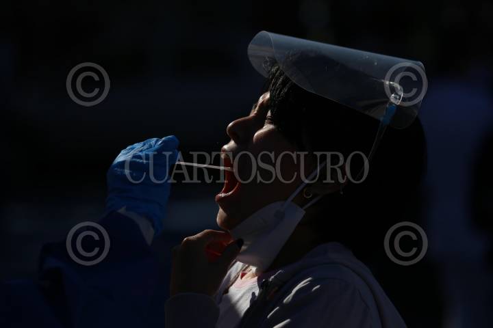 MÉRIDA, YUCATÁN, 19ENERO2022.- Ante el creciente número de contagios por Covid 19 personal de la Secretaría de Salud de Yucatán (SSY) realiza 100 pruebas gratuitas de antígenos todos los días en espacios públicos. El día de hoy se pudo observar desde muy temprana hora las largas filas de personas que acudieron a la cancha de la Colonia Fidel Velasquez con el fin de realizarse la prueba de antígenos para detectar o descartar el virus. De acuerdo al último informe de la Secretaría de Salud en el Estado (SSY) en tan sólo 24 horas se reportaron 712 nuevos contagios de Coronavirus. En total son ya 6,523 las personas fallecidas a causa del Covid 19 desde que empezó la contingencia y se tiene confirmado que 72,376 pacientes ya se recuperaron: no presentan síntomas ni pueden contagiar. Esta cifra representa el 86% del total de contagios registrados, que es 84,636 hasta el último reporte. Actualmente son 110 pacientes en hospitales públicos. FOTOS MARTÍN ZETINA /CUARTOSCURO.COM