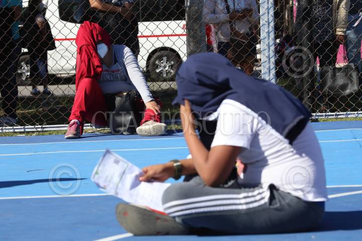 MÉRIDA, YUCATÁN, 19ENERO2022.- Ante el creciente número de contagios por Covid 19 personal de la Secretaría de Salud de Yucatán (SSY) realiza 100 pruebas gratuitas de antígenos todos los días en espacios públicos. El día de hoy se pudo observar desde muy temprana hora las largas filas de personas que acudieron a la cancha de la Colonia Fidel Velasquez con el fin de realizarse la prueba de antígenos para detectar o descartar el virus. De acuerdo al último informe de la Secretaría de Salud en el Estado (SSY) en tan sólo 24 horas se reportaron 712 nuevos contagios de Coronavirus. En total son ya 6,523 las personas fallecidas a causa del Covid 19 desde que empezó la contingencia y se tiene confirmado que 72,376 pacientes ya se recuperaron: no presentan síntomas ni pueden contagiar. Esta cifra representa el 86% del total de contagios registrados, que es 84,636 hasta el último reporte. Actualmente son 110 pacientes en hospitales públicos. FOTOS MARTÍN ZETINA /CUARTOSCURO.COM