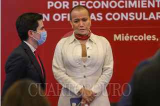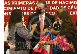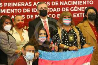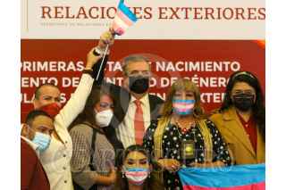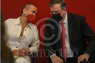 CIUDAD DE MÉXICO, 19ENERO2022.- Marcelo Ebrard, secretario de Relaciones Exteriores; y la diputada de Morena, Salma Luévano; encabezaron la ceremonia de entrega de actas de nacimiento a personas transgénero, en Estados Unidos. El evento tuvo lugar en el salón José María Morelos de la SRE. FOTO: VICTORIA VALTIERRA/CUARTOSCURO.COM